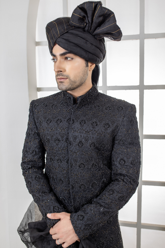 Exquisite Men’s Black Sherwani with embroidered Store