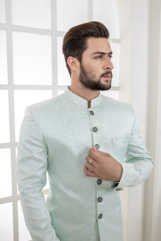 Al Aris Plain Fancy Sea Green Sherwani