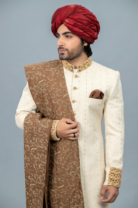 Exquisite Cream Chicken Kari Sherwani