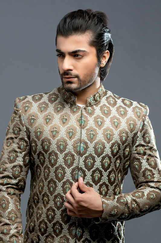 Al Aris Khaki Embroided Sherwani