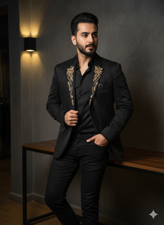 Exquisite Men’s Black White Partywear Jacket