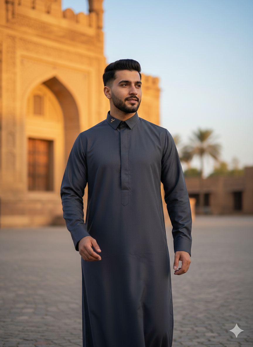 Expertly crafted from high-quality white fabric, this thobe features a unique hand-embroidered logo on the collar. With attention to detail and premium materials, this thobe offers both style and comfort. Show off your sophisticated sense of fashion with this elegant cream Thobe.